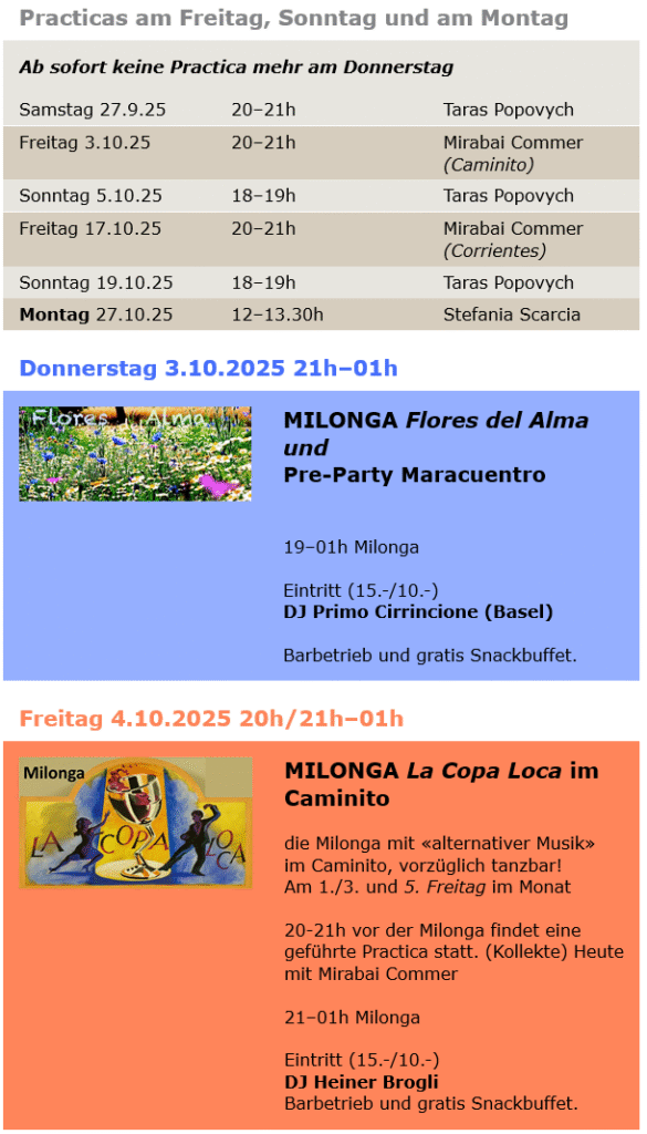 Die Milonga Daten werden fortlaufend aktualisiert.